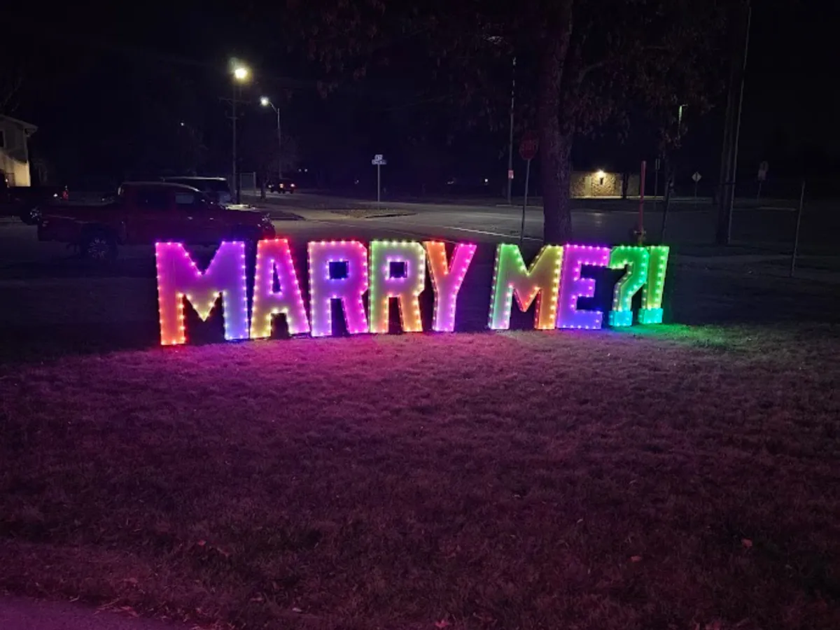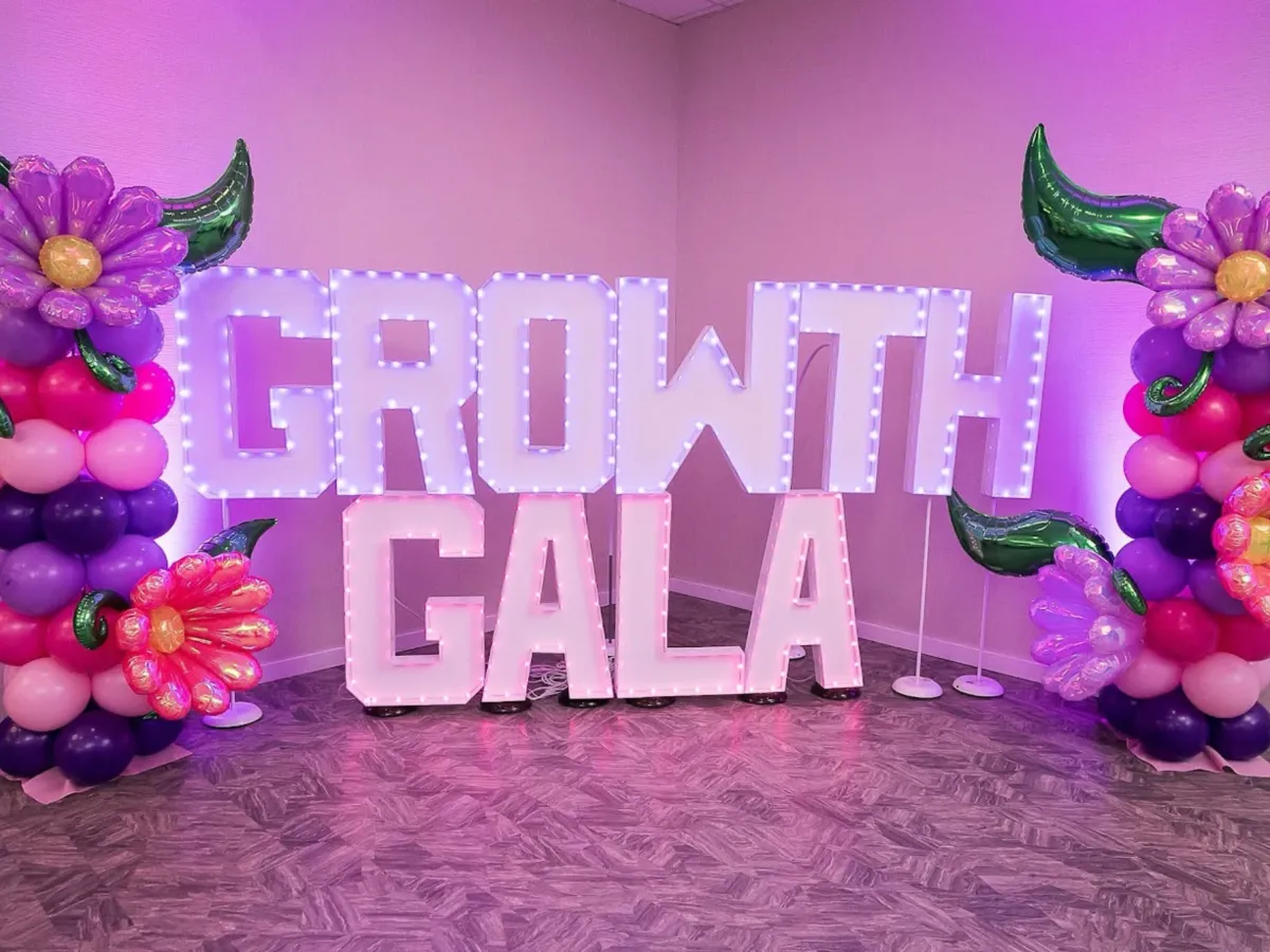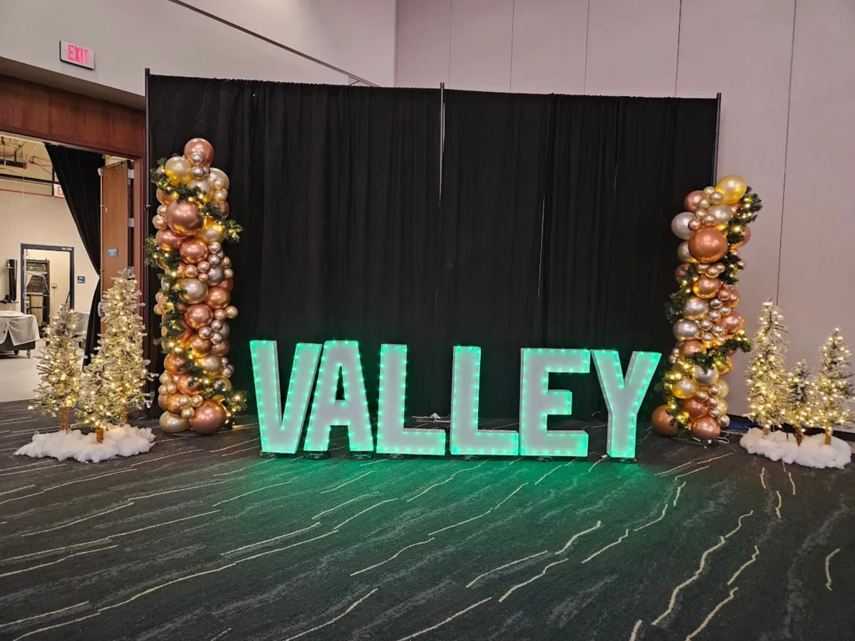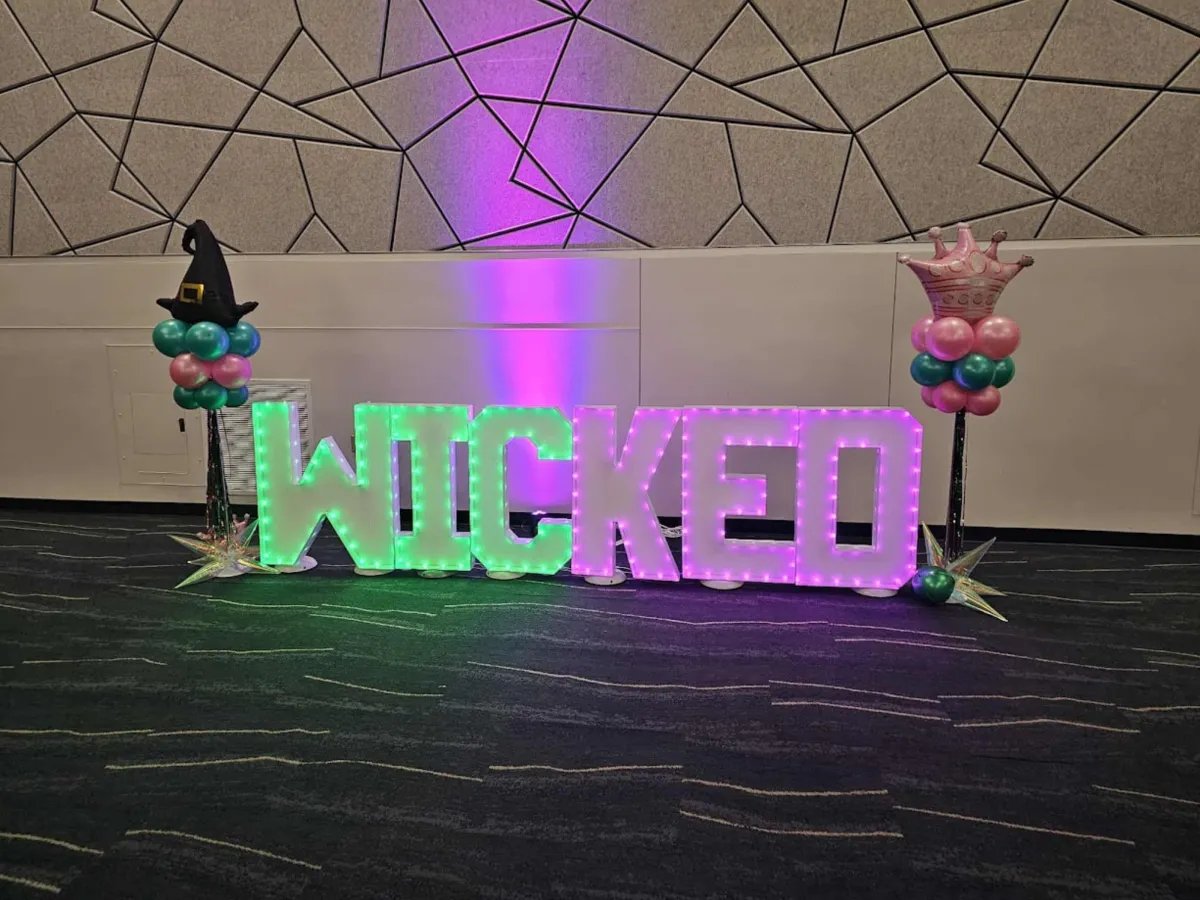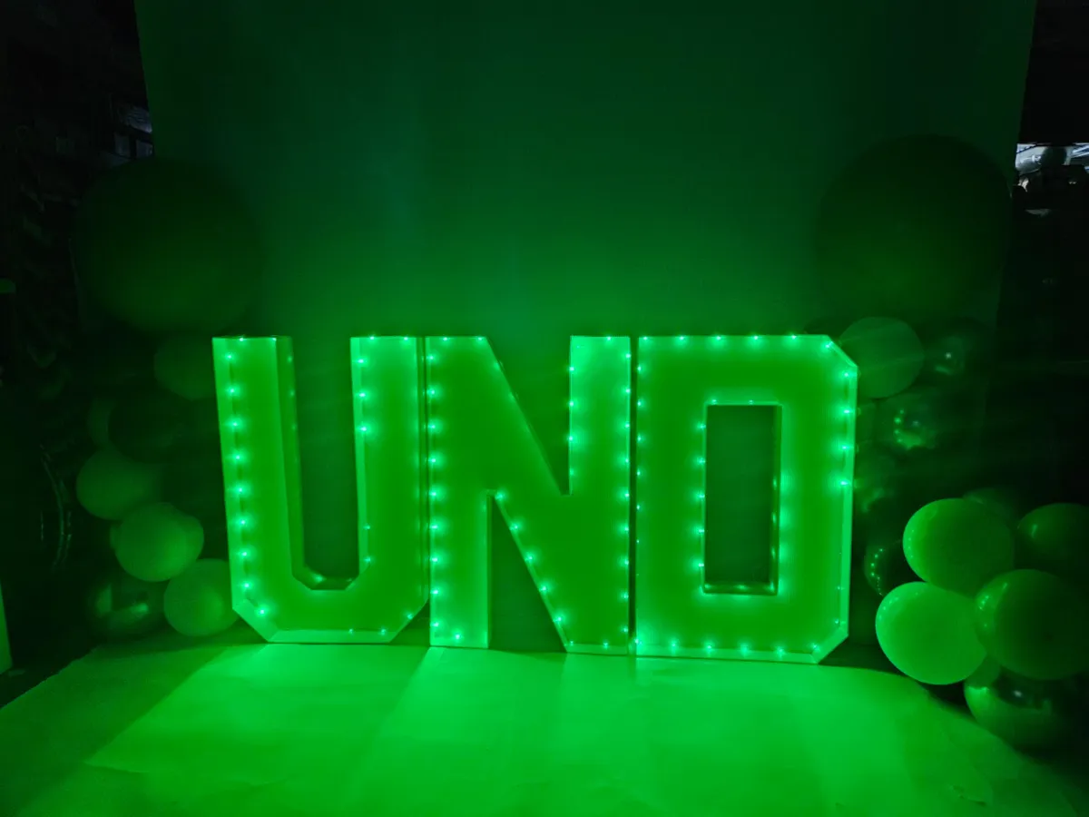 Our marquee lights stack beautifully indoors (two rows ≈ 6ft. tall) and create a bold, polished backdrop for birthdays, weddings, graduations, and corporate events.